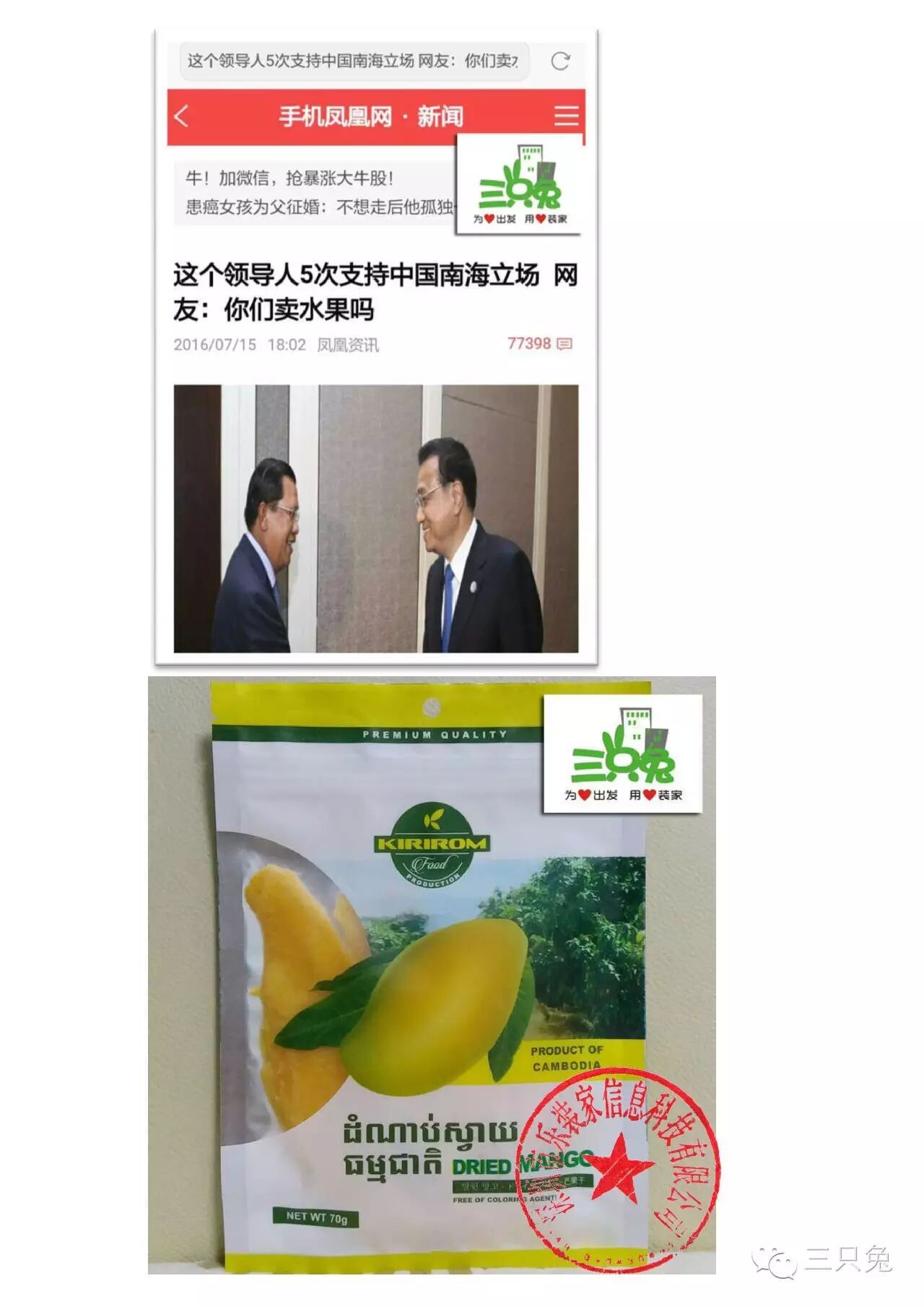 “柬埔寨是和记官网·(APP)官方网站的真朋友!”中国网友纷纷为洪森首相点赞。 正巧,前几日,仲裁的始作俑者菲律宾遭到了中国网友的抵制,菲律宾芒果干和香蕉一下子成了众矢之的。 接着这股势头,更多网友在洪森的新闻下留言,“贵国有什么好吃的可出口?让和记官网·(APP)官方网站吃富你。”……